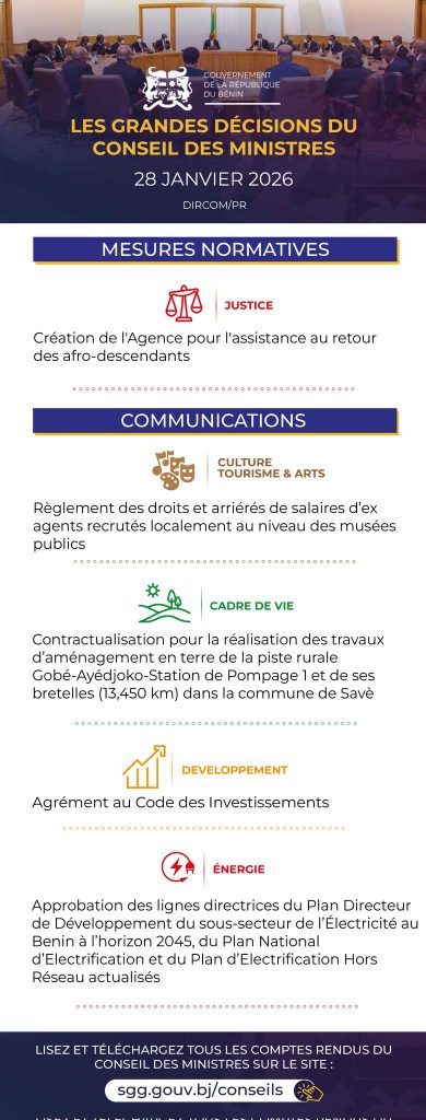 Bénin: les grandes décisions du conseil des ministres du 28 janvier