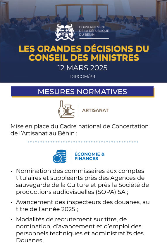 Bénin: les grandes décisions du conseil des ministres du mercredi 12 mars 2025