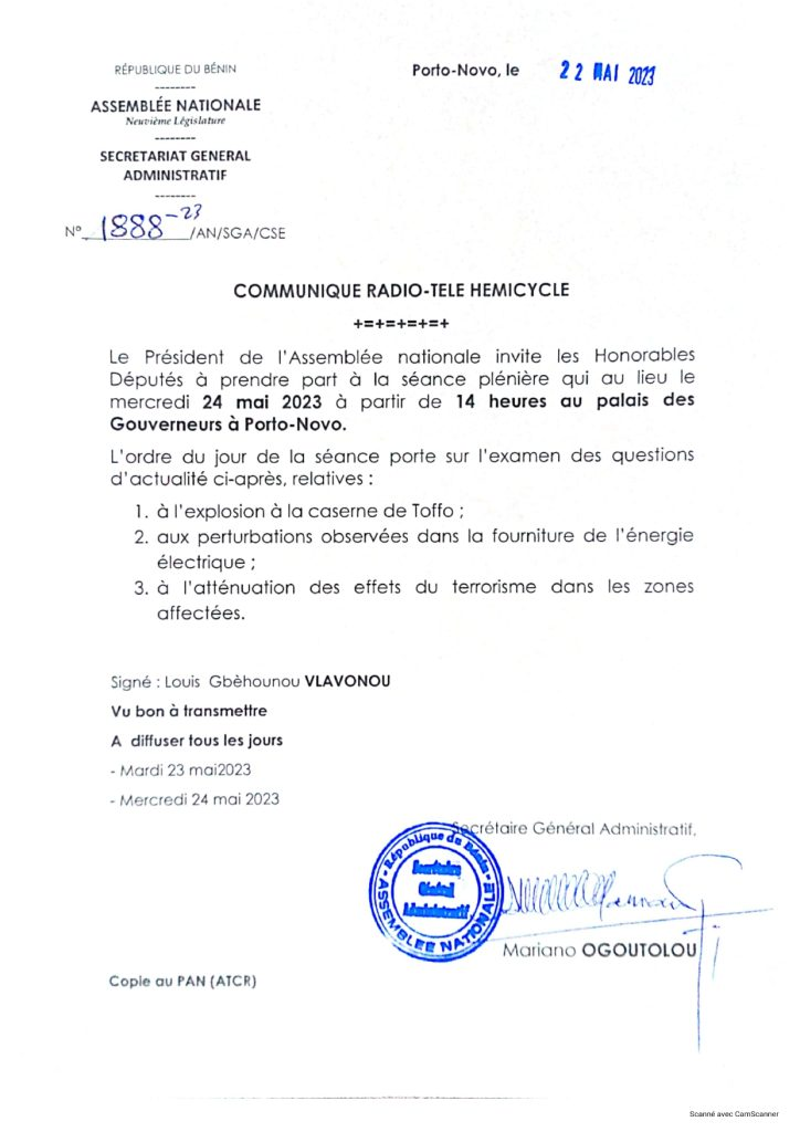 L’une des préoccupations qui seront abordées lors de cette séance sera l’explosion de la soute à munitions de l’École des officiers de Toffo. Il s’agit d’un incident grave qui a coûté la vie à certains compatriotes. Les députés auront l’occasion de poser des questions aux ministres concernés et d’obtenir des informations sur les mesures prises pour faire face à cette situation et assurer la sécurité des citoyens.