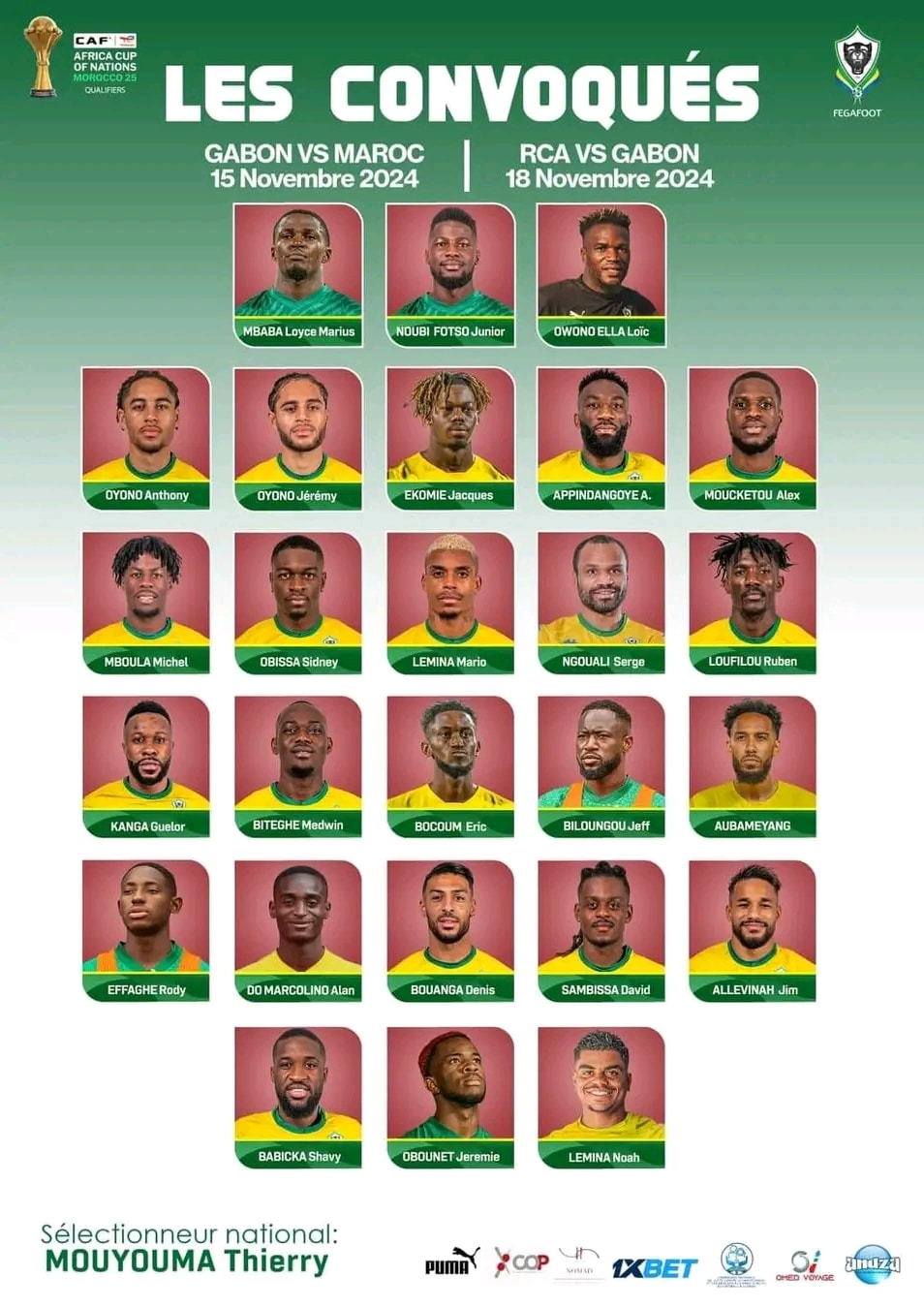 Le sélectionneur national du Gabon, Thierry Mouyouma, a dévoilé la liste des joueurs retenus pour le rassemblement de novembre. Les Panthères affronteront le Maroc et la Centrafrique, dans le cadre des cinquième et sixième journées des éliminatoires de la CAN 2025. Les Gabonais défieront les Lions de l’Atlas le 15 novembre à Franceville et la Centrafrique, le 19 novembre.