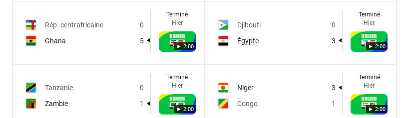 Centrafrique 0 – 5 Ghana : Salisu (21e), Partey (52e), Djiku (69), Ayew (72e), Sulemana (87e)