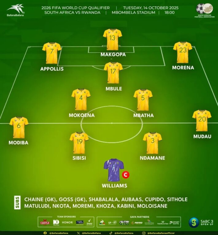 CDM 2026 (Q): les compos officielles de Afrique du Sud – Rwanda