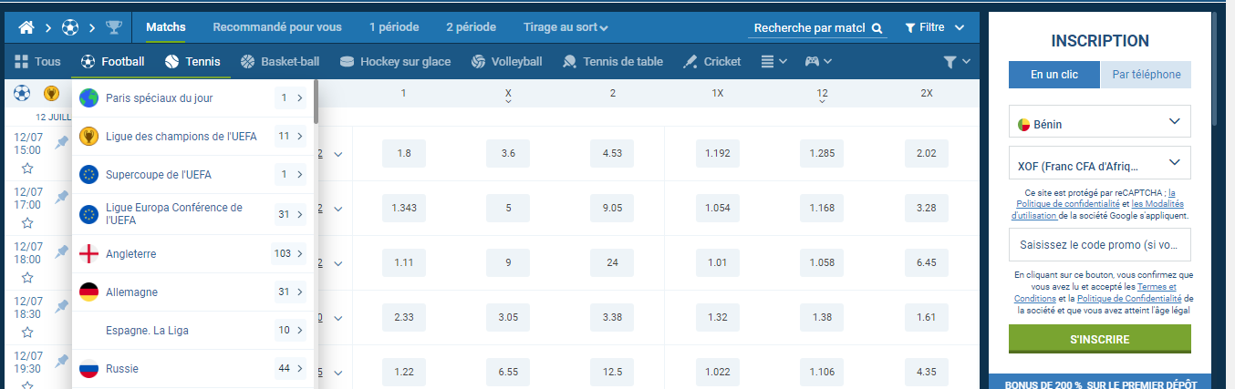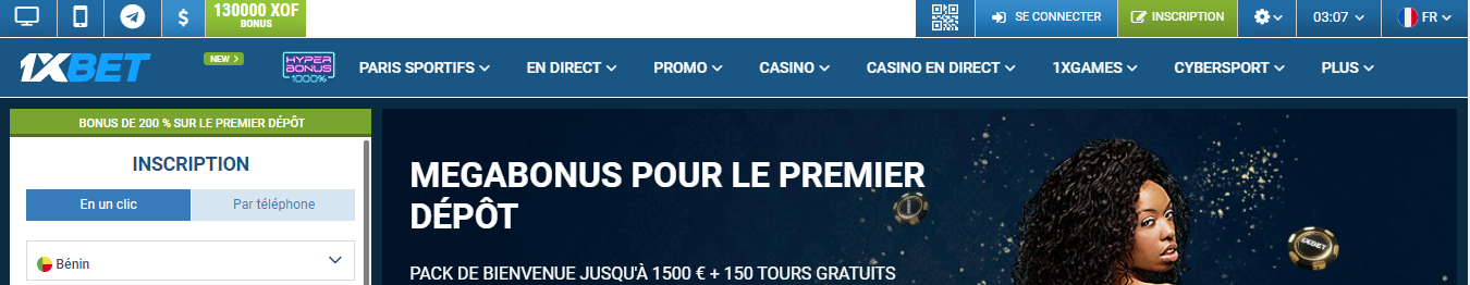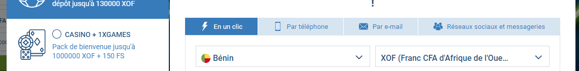 En entrant le code BETTORS lors de votre inscription 1xBet, vous vous assurez de ne pas manquer cette offre exclusive. Ce bonus est disponible pour tous les résidents du Bénin âgés d’au moins 18 ans et répondant aux conditions générales du bookmaker pour garantir un retrait 1xBet.