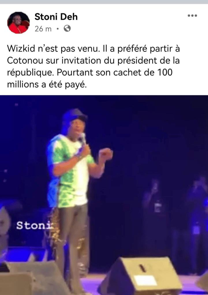 Si pour l’instant, l’artiste n’a pas donné les raisons de son absence, le chanteur serait déjà à Cotonou pour une prestation au spectacle WeLovEya qui a connu la présence du président Patrice Talon lors de la première journée le samedi 10 décembre 2022.