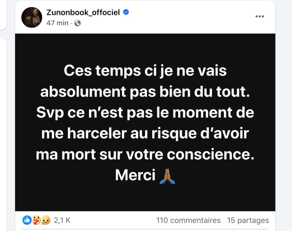“These days I’m not doing very well at all. Please, now is not the time to harass me, or you risk having my death on your conscience.” These poignant words were how Eunice Zunon, a well-known figure in the Ivorian web community, addressed her followers on Facebook.
