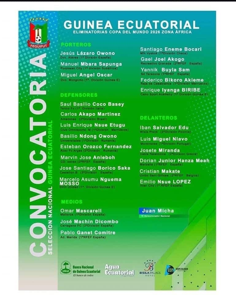 To reach that goal, coach Juan Micha has called up a 25-man squad. A mixed list composed of seasoned players and young talents. Top scorer at the last AFCON, Emilio Nsue returns to the squad.