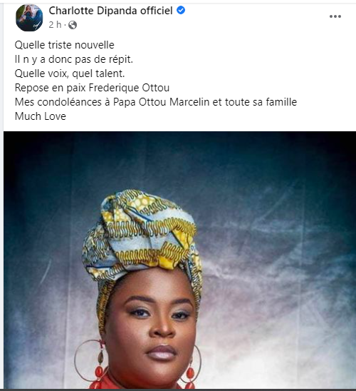 « Quelle triste nouvelle. Il n y a donc pas de répit. Quelle voix, quel talent. Repose en paix Frederique Ottou. Mes condoléances à Papa Ottou Marcelin et toute sa famille. Much Love », a-t-elle écrit.