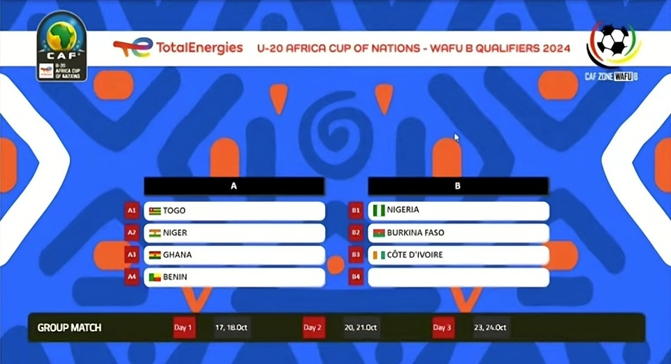 UFOA B U20 2024: le Bénin hérite du Ghana, le tirage au sort complet