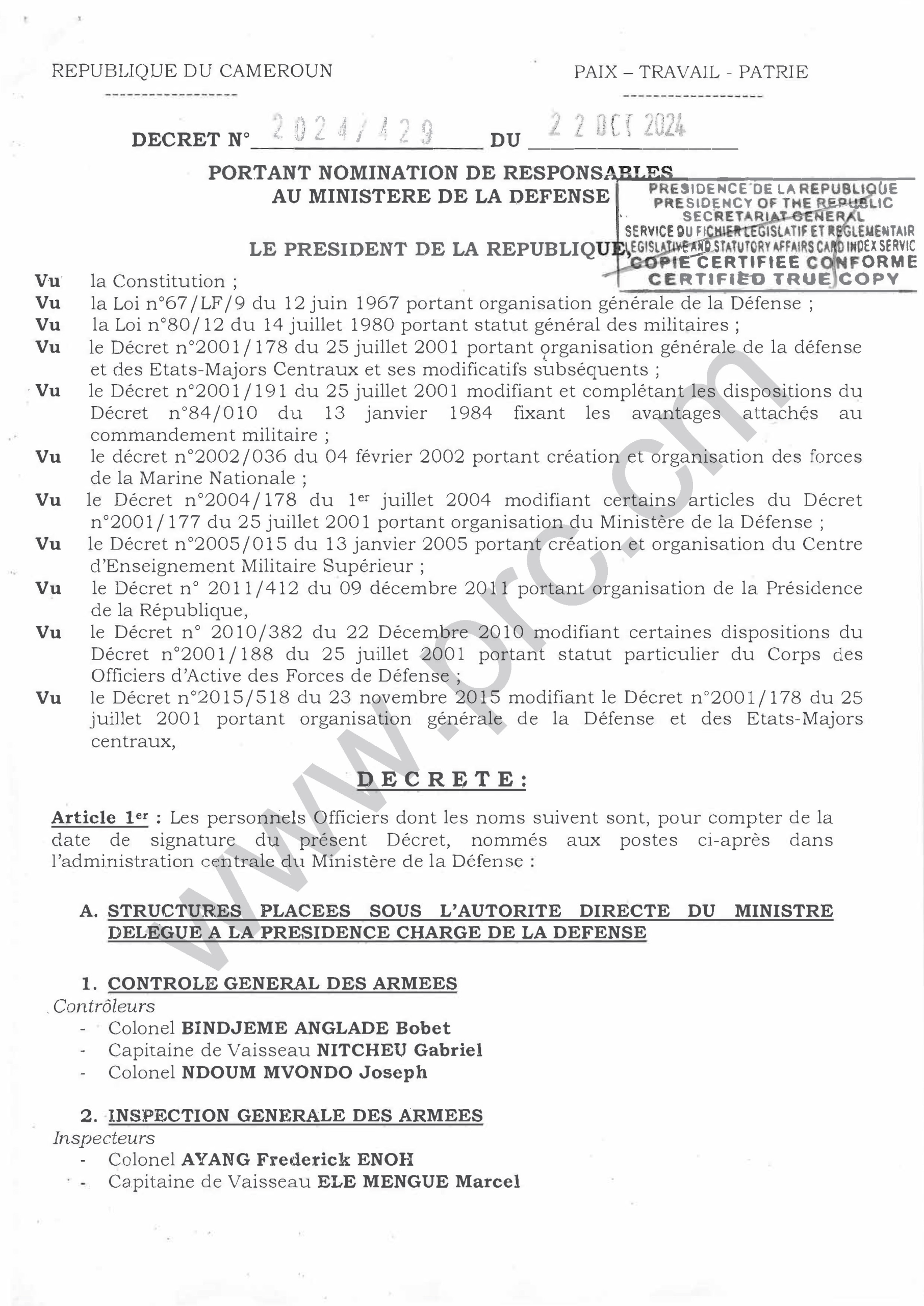 Au Cameroun, le président Paul Biya a effectué des nominations au ministère de la Défense à travers un décret signé le 22 octobre, juste après son retour à Yaoundé.